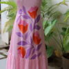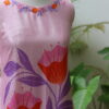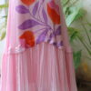 A graceful soft organza dress designed in a soothing pastel pink base, adorned with delicate floral embroidery along the neckline for a touch of elegance. The front is beautifully enhanced with bold floral prints in shades of red and purple, adding vibrancy to the subtle fabric. The lower portion features sheer gazing pleats, creating a flowing silhouette that adds both charm and style. Lightweight and airy, this dress blends feminine sophistication with contemporary flair, making it perfect for both casual gatherings and special occasions.. It is designed as a standalone piece and does not come with pants.