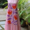 A graceful soft organza dress designed in a soothing pastel pink base, adorned with delicate floral embroidery along the neckline for a touch of elegance. The front is beautifully enhanced with bold floral prints in shades of red and purple, adding vibrancy to the subtle fabric. The lower portion features sheer gazing pleats, creating a flowing silhouette that adds both charm and style. Lightweight and airy, this dress blends feminine sophistication with contemporary flair, making it perfect for both casual gatherings and special occasions.. It is designed as a standalone piece and does not come with pants.