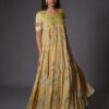 Featuring here is a chiffon long gown with double gyra, with floral print.also paired with yoke hand embroidery.with different sleeves