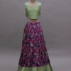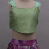A beautiful Tussar lehenga set crafted for 8–9 year old girls, featuring a vibrant tie-dye pattern highlighted with delicate all-over zari buttas. The lehenga is finished with an elegant 8-inch gold border at the bottom, adding richness to the flowy silhouette. Paired with a stylish matching blouse designed with cute scallop-style straps, this outfit is perfect for festive occasions, birthdays, and celebrations.