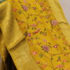 Elevate your elegance with this exquisite Kanchi crepe silk saree, beautifully adorned with all-over floral and petit point embroidery. Delicate vine patterns and blooming motifs are intricately crafted across the rich silk base, creating a graceful and refined appeal. The saree is complemented by a classic Kanchi woven border enhanced with fine zari detailing, adding a regal finish.