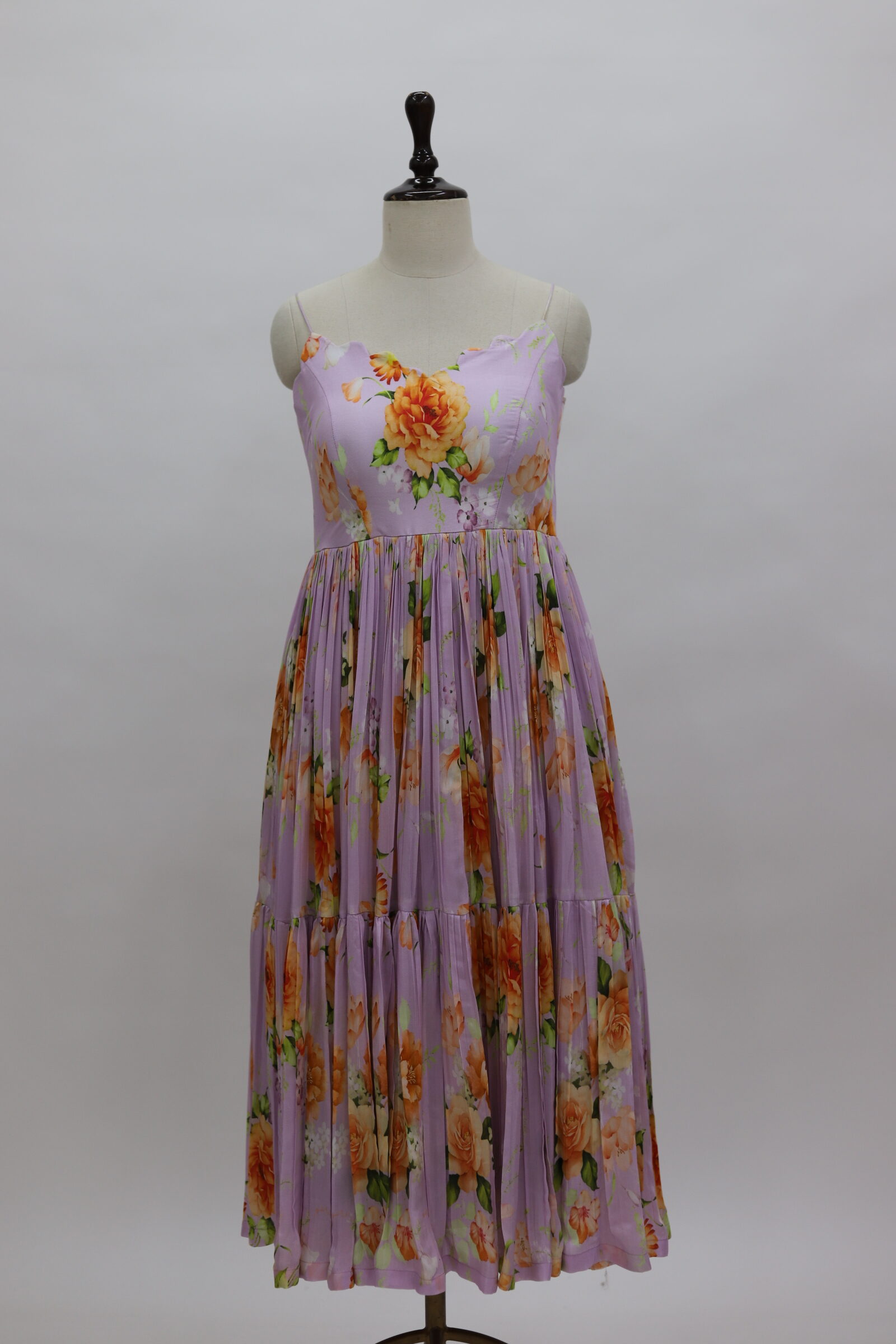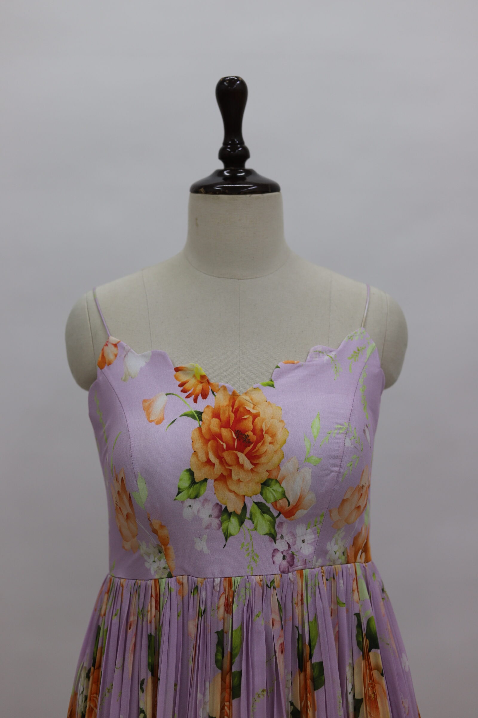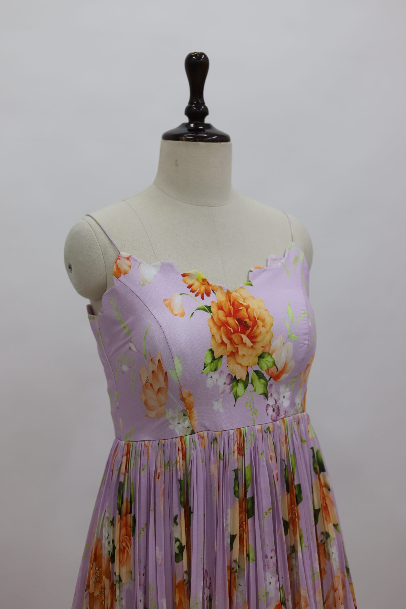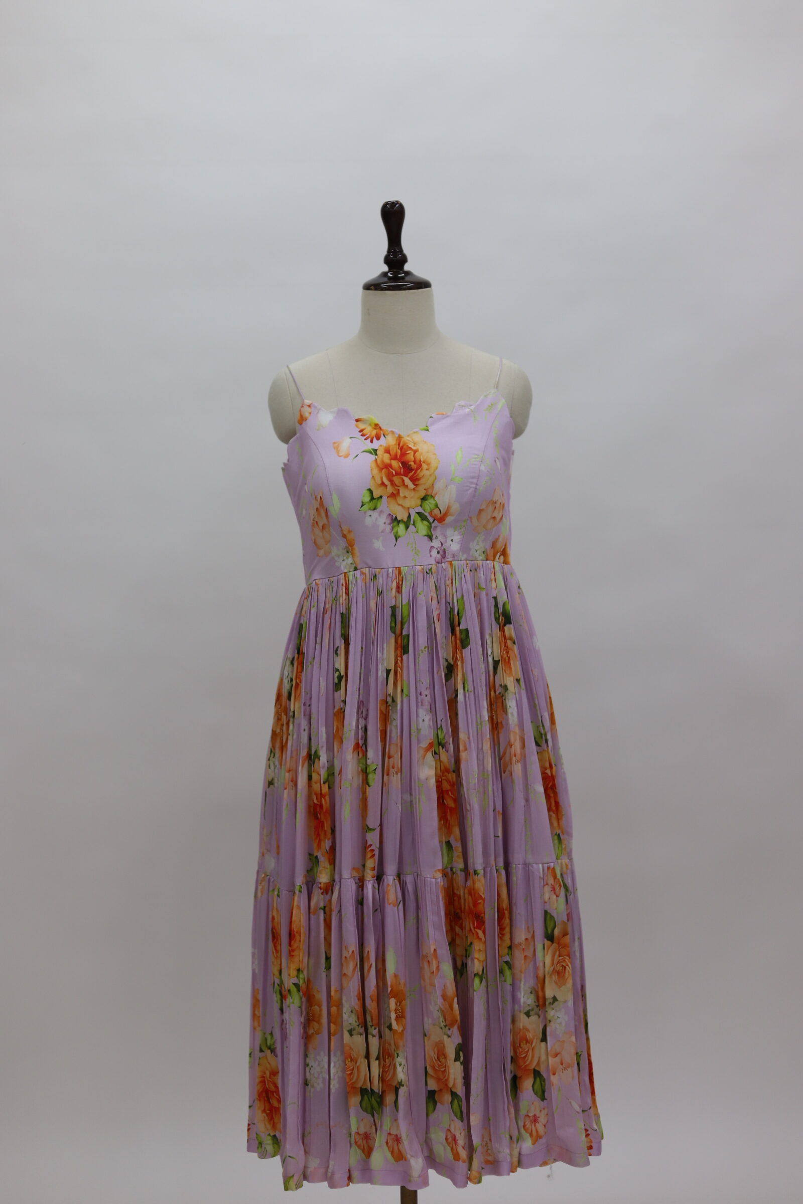 A graceful muslin floral tunic designed with a delicate all-over floral print on a soothing pastel base. The fitted bodice flows into soft gathered tiers, creating a breezy silhouette that drapes beautifully. Lightweight and breathable, this tunic is perfect for effortless daytime elegance and relaxed occasions.