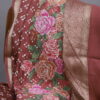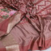 An exquisite Chanderi Bandhani saree crafted for timeless elegance, featuring intricate petit point artistry delicately highlighted on one side of the saree. The flowing drape is enhanced by a beautifully detailed, statement pallu that exudes regal charm. Paired with a refined plain blouse, elegantly finished with a rich zari border on the sleeves, this saree is a perfect blend of heritage craftsmanship and understated luxury—ideal for festive occasions and refined celebrations.