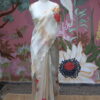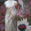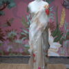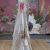 An exquisite tissue and organza mix saree adorned with elegant floral applique work that adds a touch of artistic charm. The saree is beautifully finished with scallop detailing on all four sides, enhancing its refined appeal. It is paired with a raw silk blouse piece, designed with two delicate floral buttis on the sleeves, completing the look with subtle sophistication. Perfect for festive occasions, poojas, and graceful evening events.