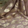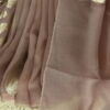 A graceful organza saree highlighted with delicate gota patti buttis scattered all over, finished with refined scalloped borders on all four sides. Comes with a soft muslin blouse beautifully detailed with matching gota patti buttis, perfect for a subtle yet festive look.