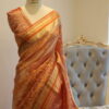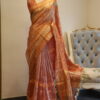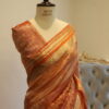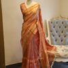 A beautiful tissue kora with bird pattern embroideries with gap borders in gold is a perfect combination for a graceful look.