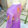 Pure muslin fabric is crafted into a beautiful gathered silhouette, offering an effortless flow and refined elegance. The yoke is thoughtfully designed with delicate tissue strips, accentuated by handcrafted floral appliqué work that adds texture and charm. Paired with soft muslin pants, this ensemble reflects understated luxury—perfect for elegant day occasions and intimate celebrations.