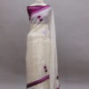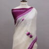 A graceful organza saree crafted in two soft shades of the same colour, offering a subtle and elegant gradient effect. The saree is beautifully finished with a rich satin border, adding a refined sheen to the drape. Delicate thread-work floral motifs paired with gota patti leaf highlights enhance its charm with a touch of tradition. The saree comes with a matching satin blouse piece, completing the look with sophistication and style.