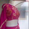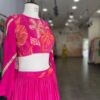 Introducing the lehenga. Crafted from the finest crepe material, with flower motifs highlighted with hand embroidery to the yoke part and for the sleeves, with beautiful lehenga set