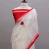 A graceful organza saree crafted in two soft shades of the same colour, offering a subtle and elegant gradient effect. The saree is beautifully finished with a rich satin border, adding a refined sheen to the drape. Delicate thread-work floral motifs paired with gota patti leaf highlights enhance its charm with a touch of tradition. The saree comes with a matching satin blouse piece, completing the look with sophistication and style.