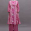 Pure tissue fabric crafted with exquisite all-over floral thread work, giving the kurti a rich and graceful sheen. The plain tissue yoke and sleeves balance the design, highlighted with a stunning kasu border for a traditional yet classy touch. this set offers a luxurious festive look with effortless elegance.