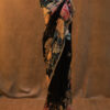 A pure Georgette saree adorned with a graceful all-over floral print, enhanced further with highlighted floral motifs embellished with delicate sequin work. The edges are finished with a beautifully hand-worked scallop detailing, adding a refined charm to the drape. The blouse piece is crafted with intricate sequin work and complemented by scallop-finished sleeves, making it a perfect blend of sophistication and subtle shimmer.