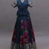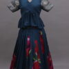 A stunning Chiniya silk lehenga set designed for 8–9 year old girls, featuring a rich big floral bunch print that adds bold elegance to the look. The lehenga is beautifully finished with a silver zari woven border, giving it a graceful traditional touch.