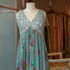Soft, flowy, and effortlessly graceful, this gown drapes beautifully, making it perfect for festive occasions, weddings, sangeet nights, and special celebrations. A perfect blend of traditional artistry and contemporary elegance. ( 1 piece)